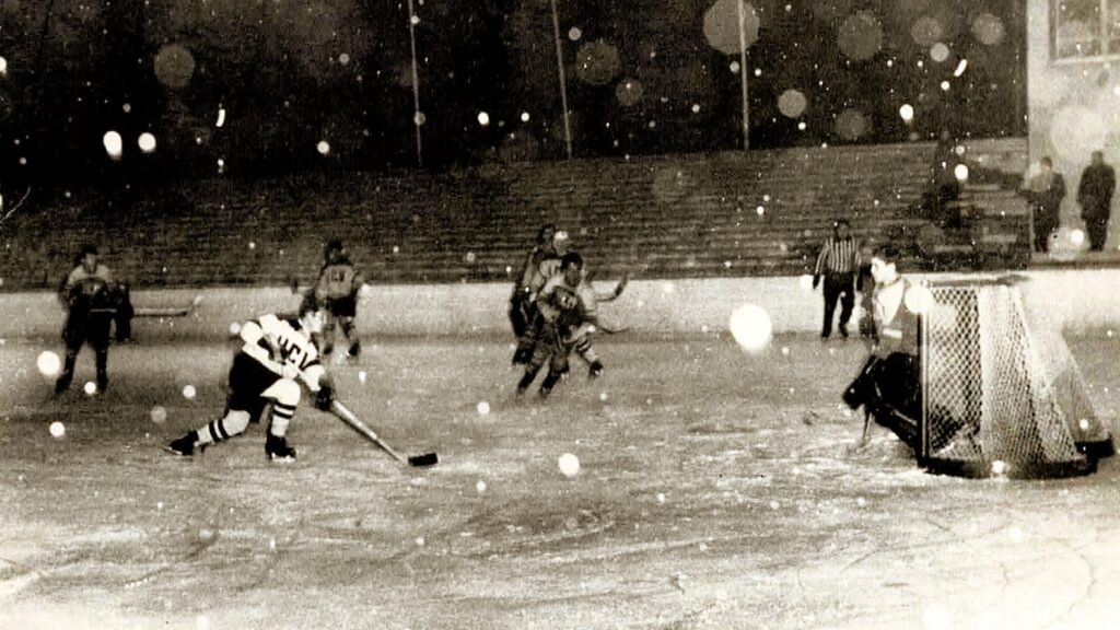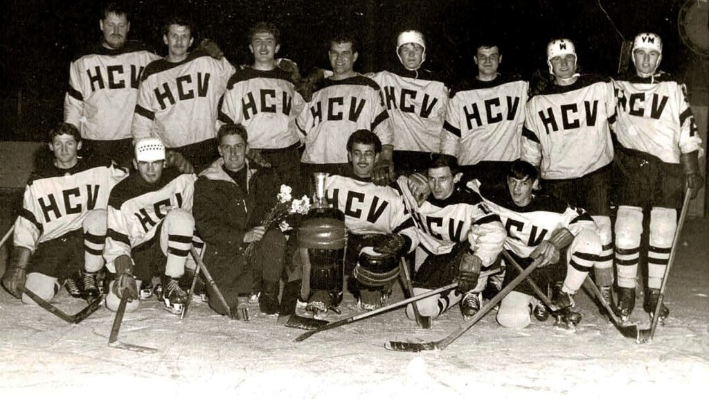 L’année où Porrentruy perd son club de hockey, Vendlincourt en crée un et aménage, à proximité de la douane, une patinoire naturelle dotée d’un éclairage et de hautes bandes. Parmi les membres fondateurs, un certain Charles Corbat… Il y a des traditions dans ce village : on patine sur l’étang depuis 1905. Dès que la température baisse, des membres dévoués se relaient pour arroser la glace pendant des nuits, avant que le radoux ne vienne tout réduire à néant.